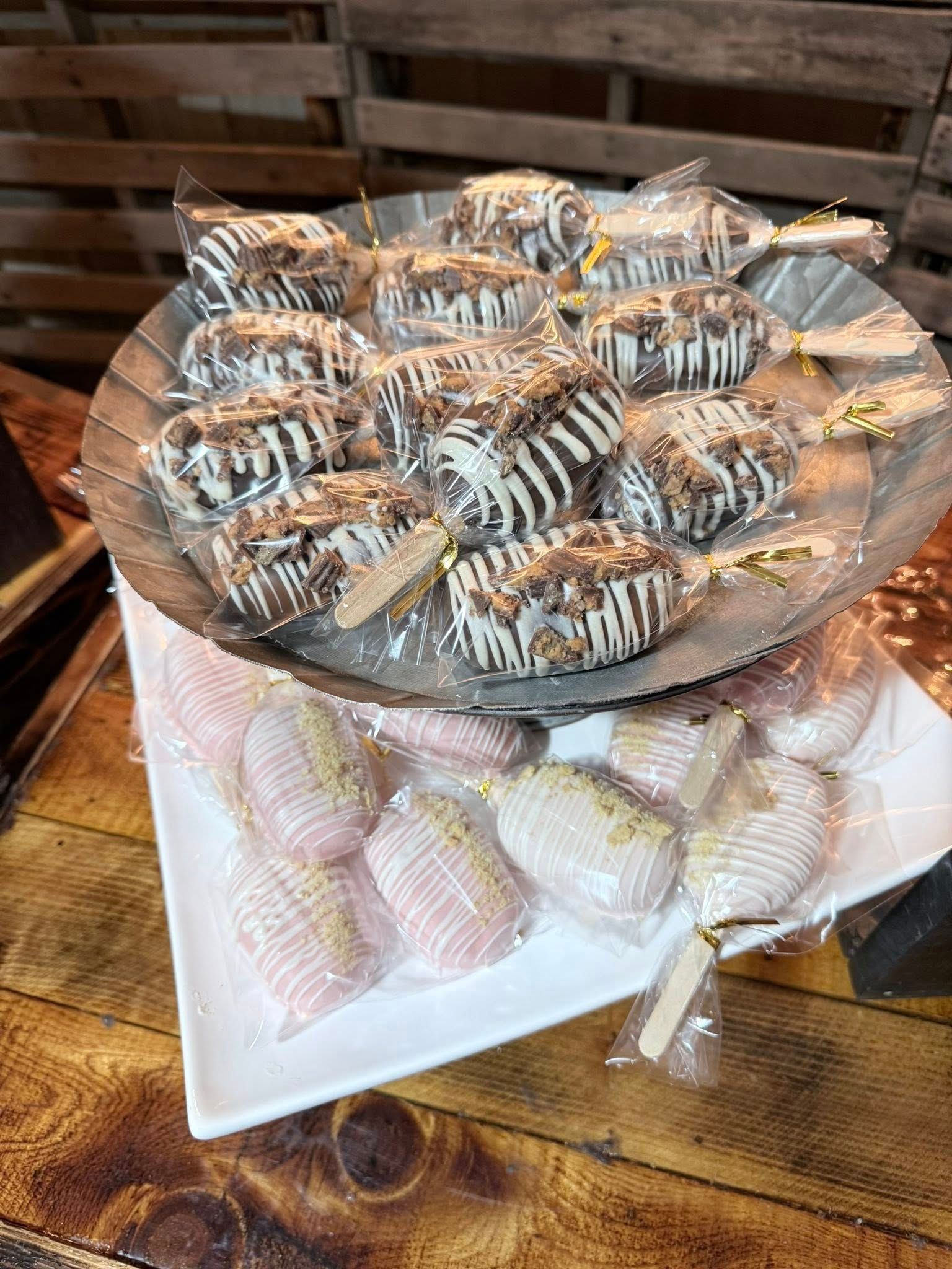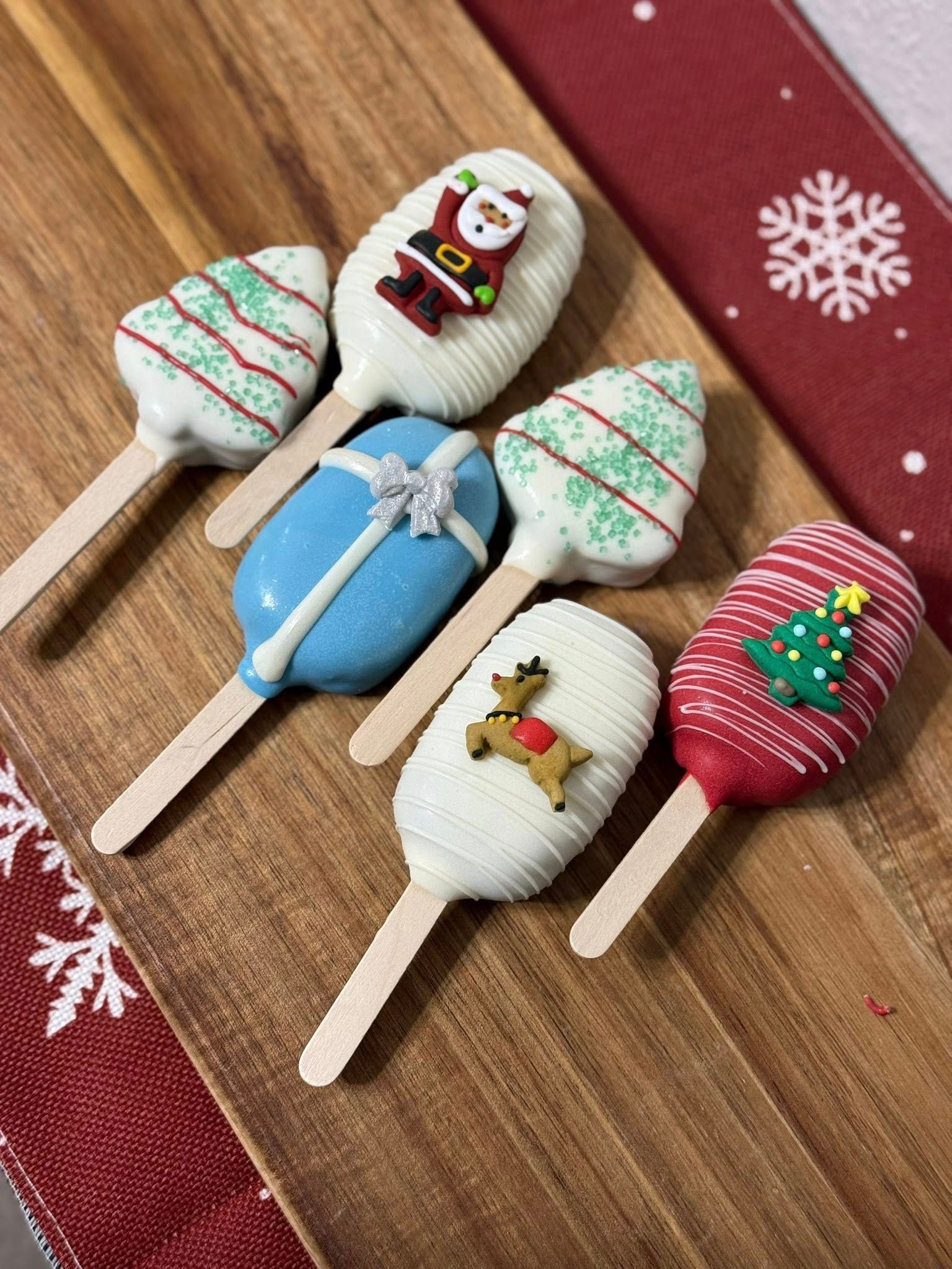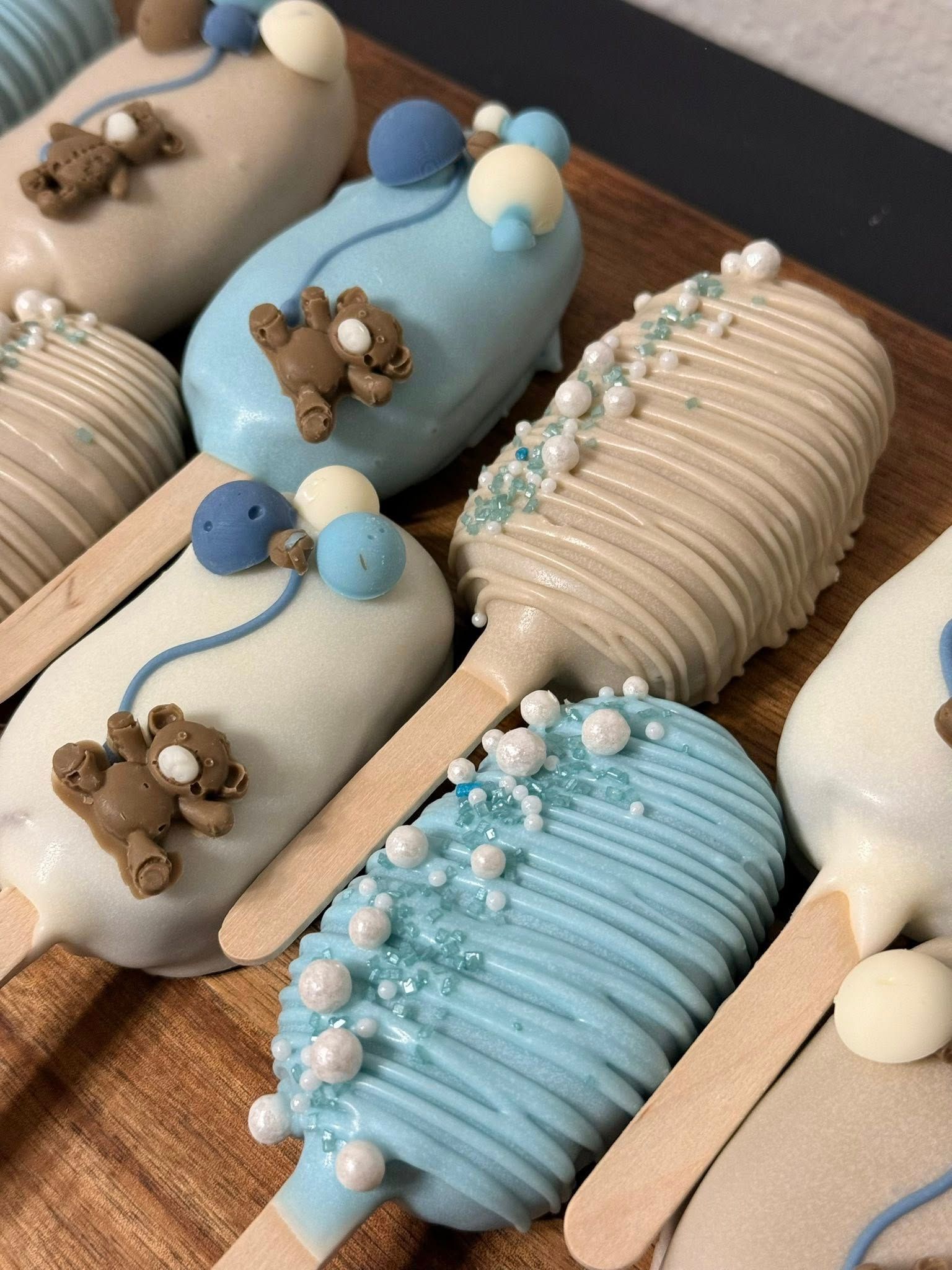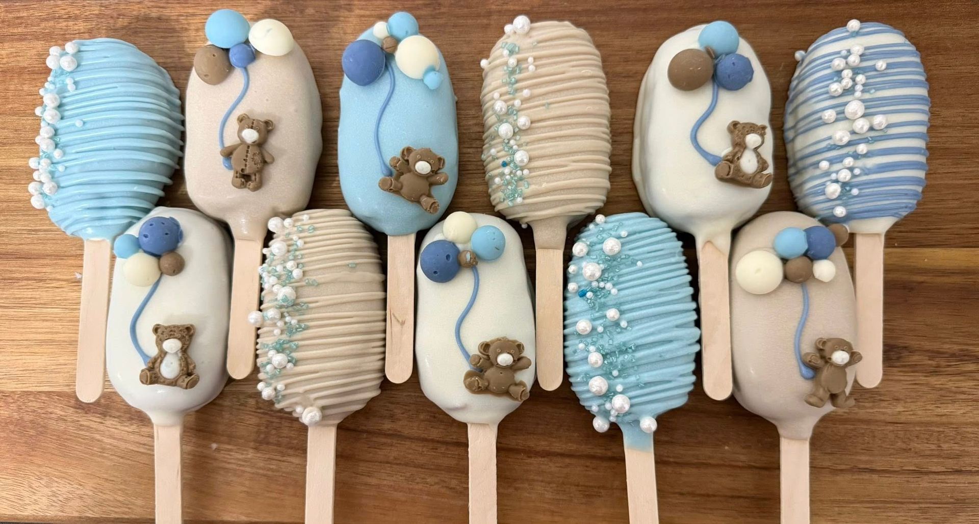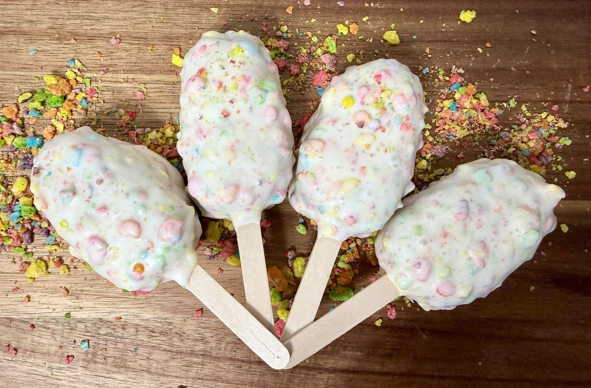 Vibrant gallery of custom cake pops, cakesicles, pretzels, and Rice Krispies.